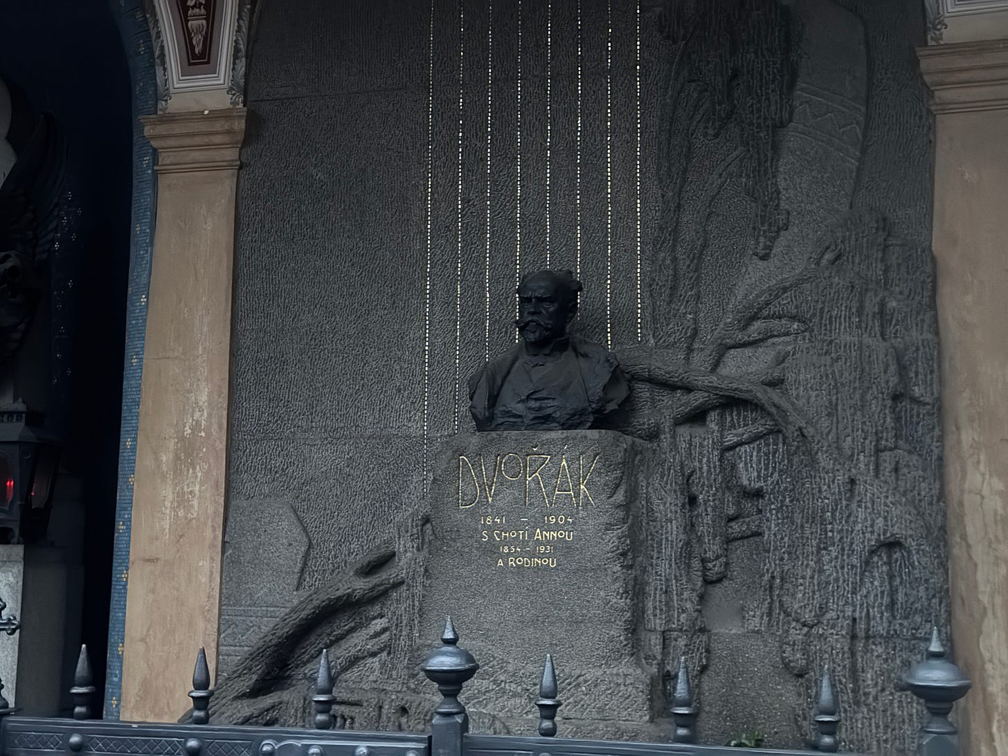 Vyšehrad cemetery is as high-society as it gets: a small, intimate attachment to a neo-gothic basilica, sitting on top of a medieval fort and housing the Slavín Tomb — a Czech equivalent of the Panthéon. It is a national cemetery that buried artists, intellectuals and other individuals significant to Czech culture and society — making a walk through the cemetery somewhat akin to being introduced to the participant of an extremely posh, albeit partially involuntary dinner party. Smetana, the other (and prior) giant of Czech National-Romantic music, happens also to be buried in Vyšehrad — as I later discovered. Dvořak introduced me to Smetana, though I can’t recall whether it was musically or physically by this point.